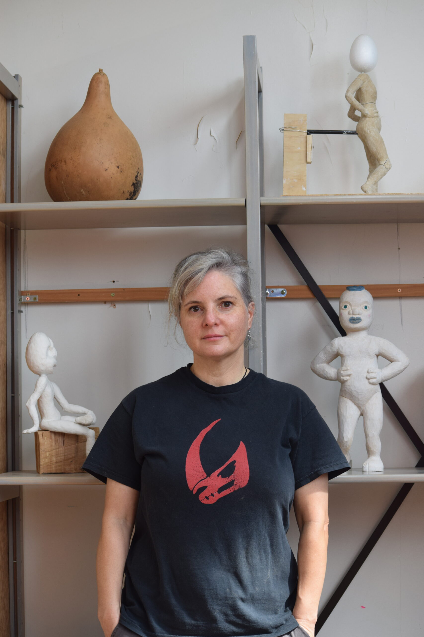 Ngaroma’s work and research centres on Māori narratives, with a focus on retelling whānau, hapū, and iwi stories through a wahine Māori lens. In 2022, she built a storehouse for a public installation in Kaitaia. She is known for her karetao (hand-carved puppets) and love of chainsaws.