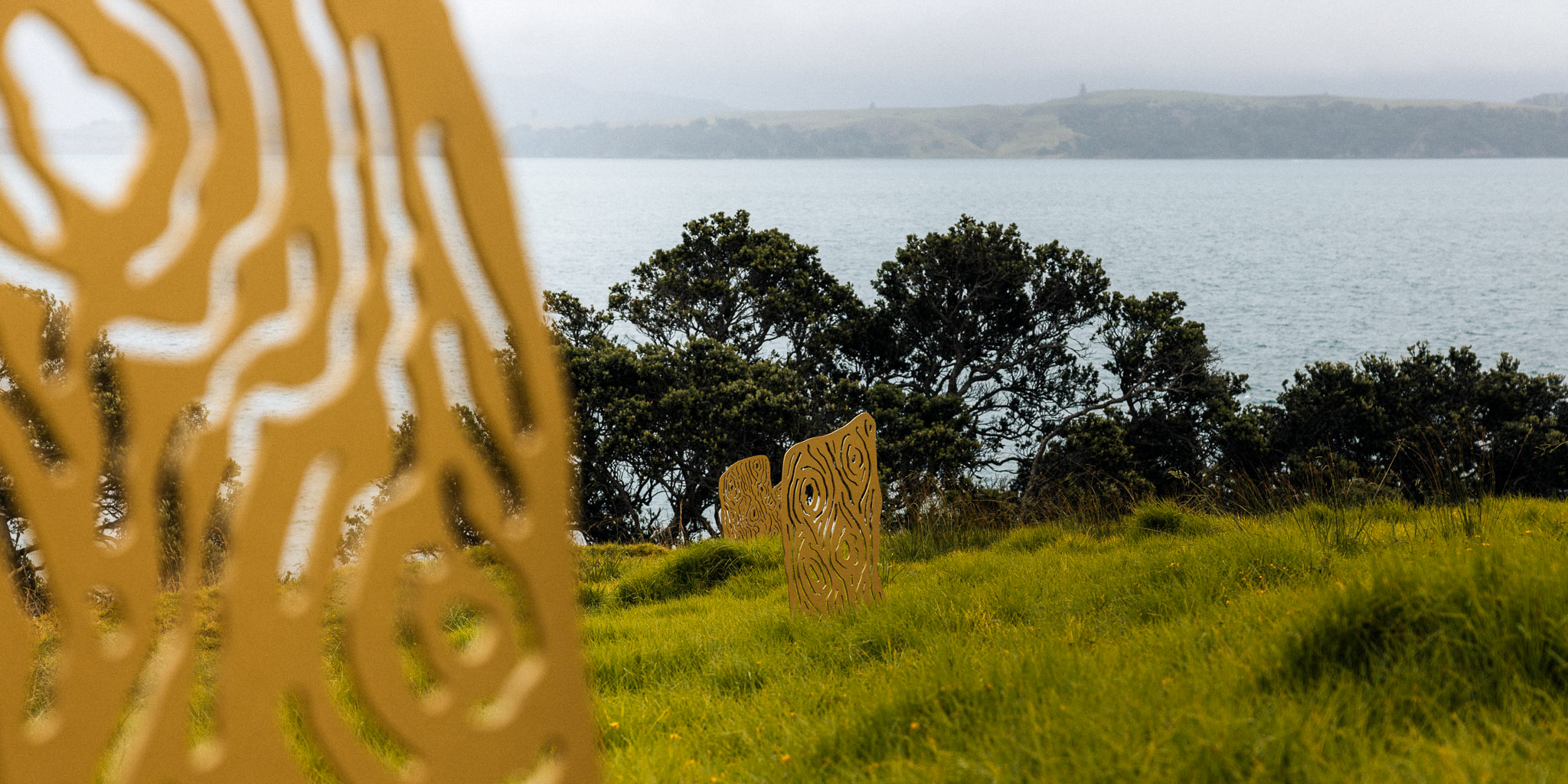 The Auckland isthmus was once home to large swathes of kauri and conifer–broadleaf forests. Between 1870 and 1900, they were intensively cleared, making kauri timber and gum the region’s top exports and forestry its largest employer. Accounts from the time recall the smell of gum and new-sawn timber hanging in the air. Consisting of laser-cut cartoon-like ghosts of tree stumps scattered across the hillside, Stumped recalls this history. Turumeke Harrington’s installation is a portrait of a landscape tamed, harvested for profit and to make way for the urban life we live today. While visitors enjoy their stroll on the headland, Harrington reminds them that ‘nature’ once looked very different.